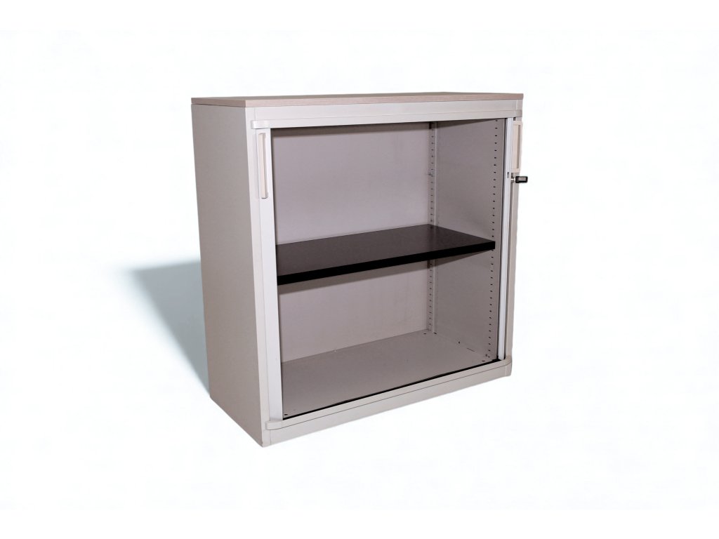 Skříň, Steelcase, 2OH, 100x100x43, kov, sv.šedá, žal., police,sokl, kat.B