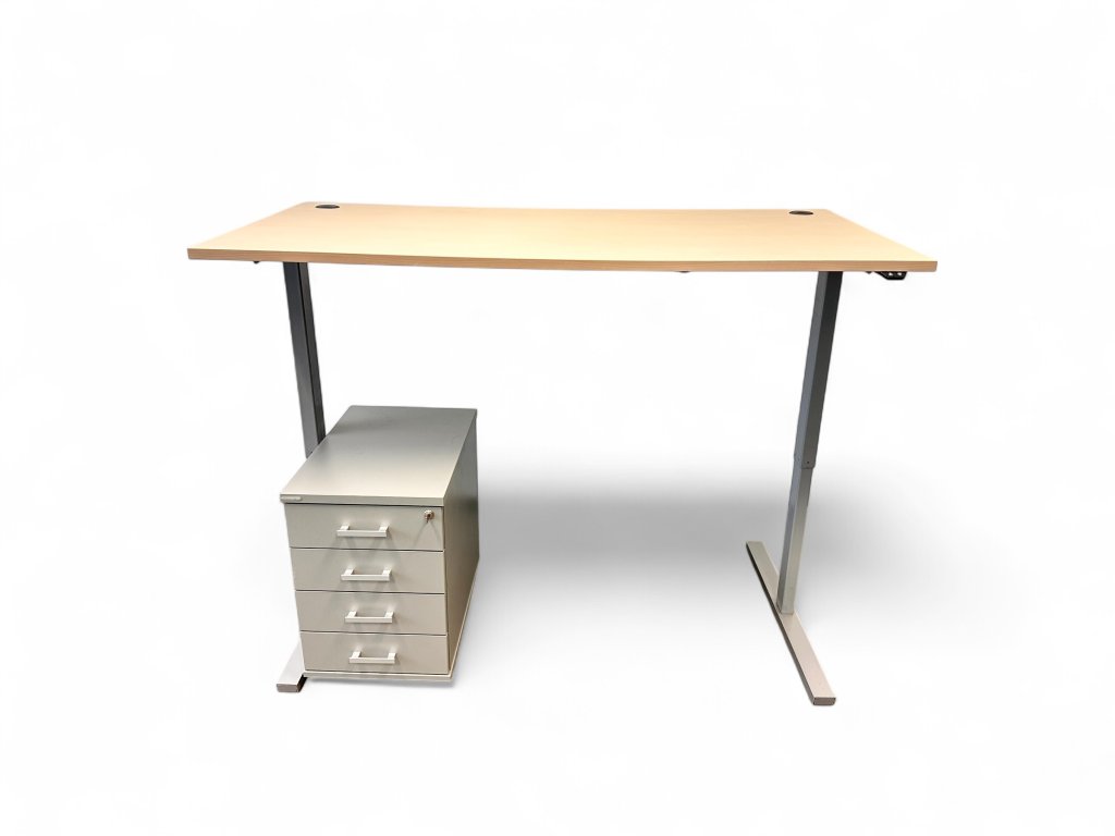 Stůl el.výš.stav, Linak + kontejner Hobis, bříza/šedá