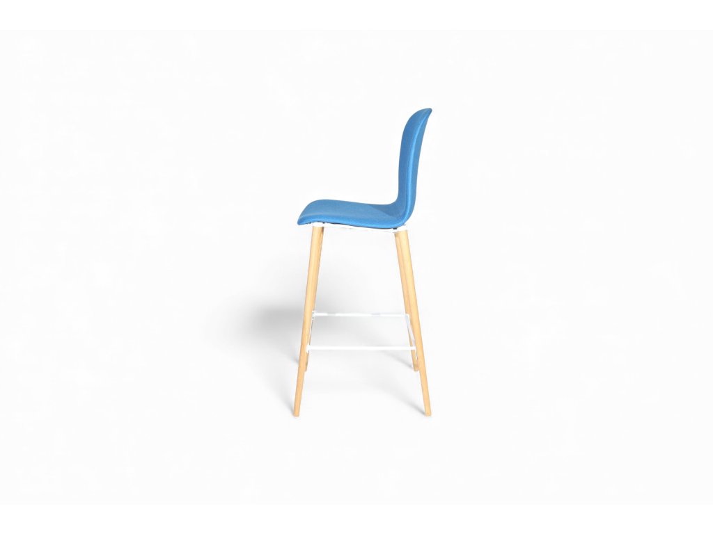 Židle barová,STC modrá/dřevo, látka/dřevo/kov